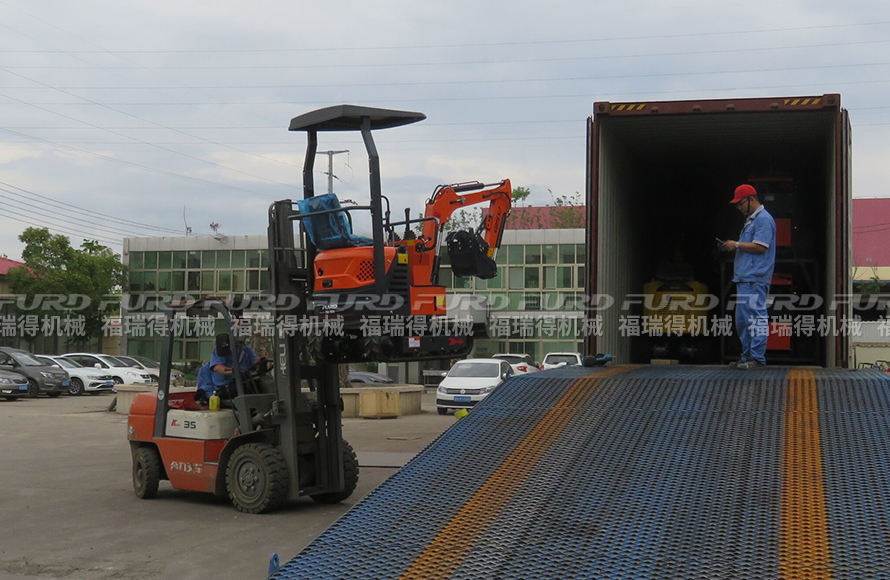 星空电竞一批路面机械装柜出口马来西亚